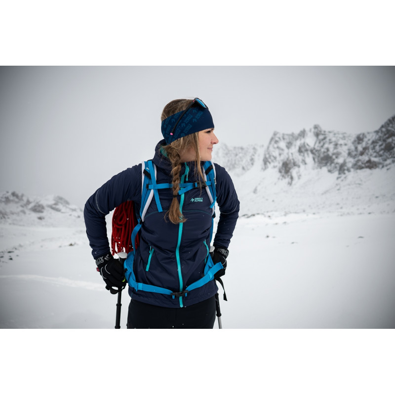 La Bora Lady 1.0 Jacket Directalpine est une veste softshell à capuche femme très moderne, à la fois souple et chaude avec garnissage en polaire Polartec Alpha. 100% coupe-vent et très respirante.