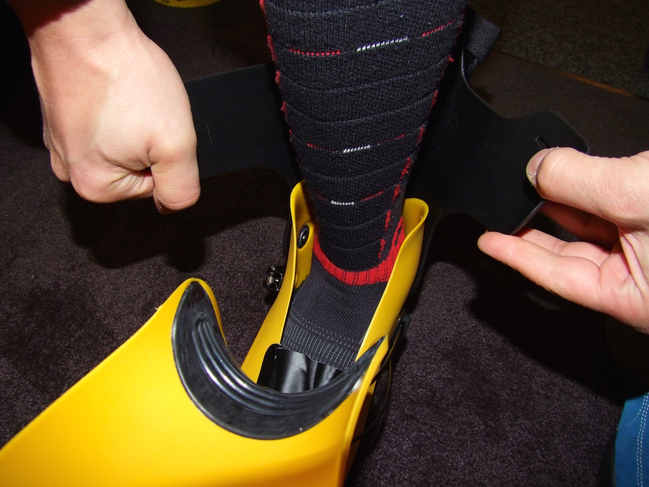 1. Mettez le chausson avec votre semelle de calage, dans la coque