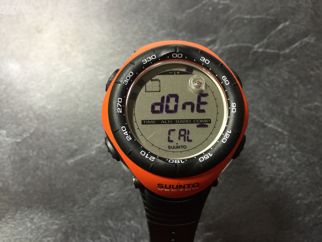 - Lorsque l’étalonnage est terminé, appuyer sur le bouton [Mode] pour confirmer le réglage et quitter. Pour garantir une bonne précision, il est important de tenir la montre Vector de niveau pendant l’étalonnage.