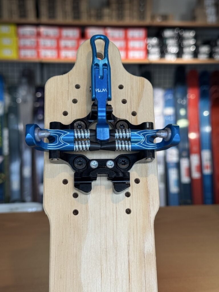 Hormis la refonte graphique et mécanique des avants de fixation, PLUM a également ajouté un ressort de compression sur leurs arrières, afin de mieux suivre la flexion du ski lors des grosses compressions, et d’éviter d’arriver en butée (8mm « d’élasticité » au total soit 4mm d’espace chaussure + 4mm de ressort).