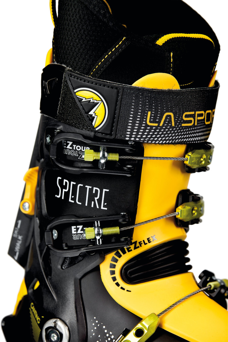 La chaussure de ski de randonnée Spectre de La Sportiva est le fruit de deux objectifs : allier une chaussure 4 boucles de descente avec la légèreté d’une chaussure typée pour la montée. Et le résultat ? Une chaussure de 1390g (en taille 27) bénéficiant d’une rigidité exceptionnelle.