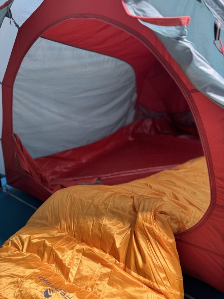 Nous avons pu observer la nouvelle tente légère Volta 2. Une tente tunnel légère et compacte, idéale pour les routards et bikepackers. Son sac de rangement se glisse facilement dans un sac à dos ou se fixe sur un vélo, sans gêner le cycliste. Sa structure en tunnel, avec trois arceaux en aluminium, est à la fois solide et facile à monter grâce à un code couleur et des cordons. Le vestibule spacieux permet de cuisiner, sécher des vêtements ou protéger le matériel, tandis que la ventilation et les doubles accès assurent confort et circulation d’air. Fabriquée avec des matériaux imperméables et résistants (nylon ripstop et coutures étanches), la Volta 2 places de Ferrino est pensée pour affronter toutes les conditions en randonnée. Poids de 2600g au maximum, elle offre un espace de vie très généreux de 3 m3 et une longueur/largeur de 420cm x 155cm (pièce de vie + vestibule).