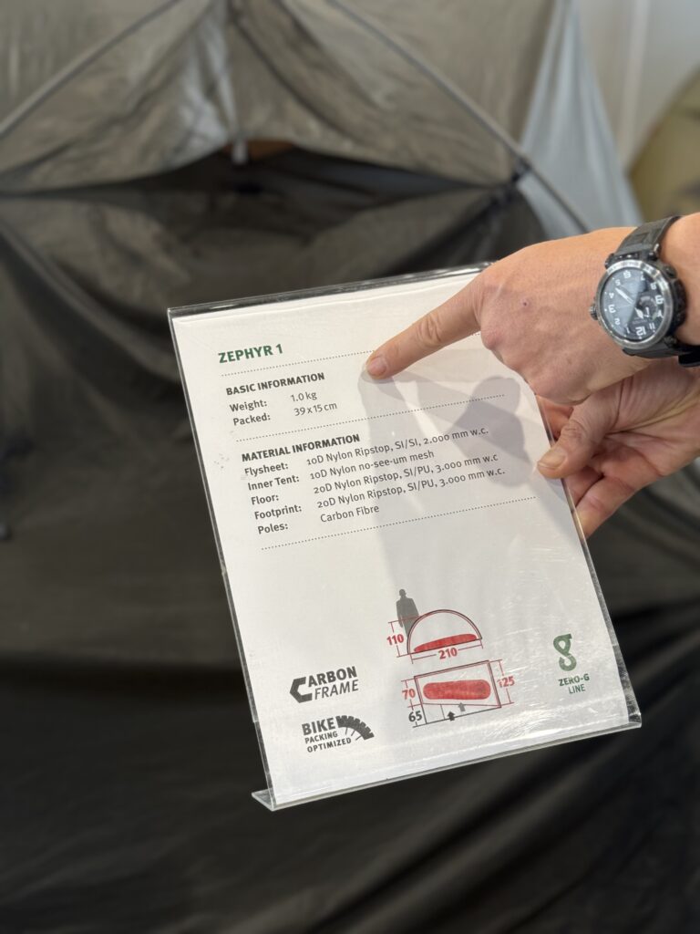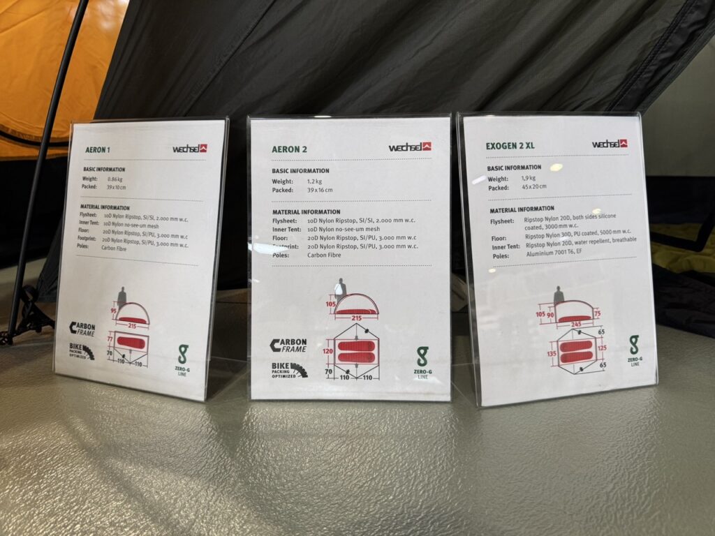 Pas mal de nouvelles tentes ultra-légères du côté de la marque allemande WECHSEL comme cette Zephyr 1 qui était présentée au salon Sport Achat Été 2026 de Grenoble et son poids qui a retenu notre attention. Seulement 1kg pour 210/125cm de longueur et largeur, avec une hauteur de 110cm. La vraie belle innovation proposée est le retour sur le marché des arceaux en fibre de carbone, le top pour voyager léger !