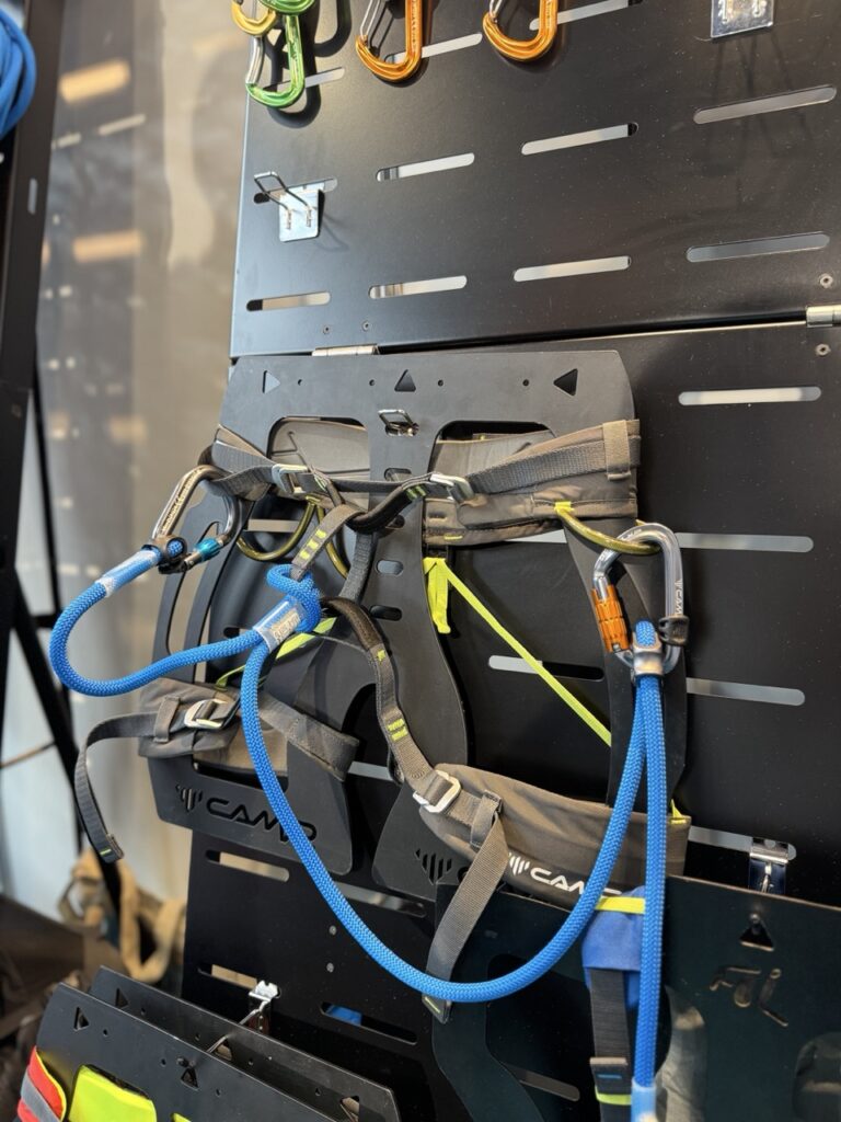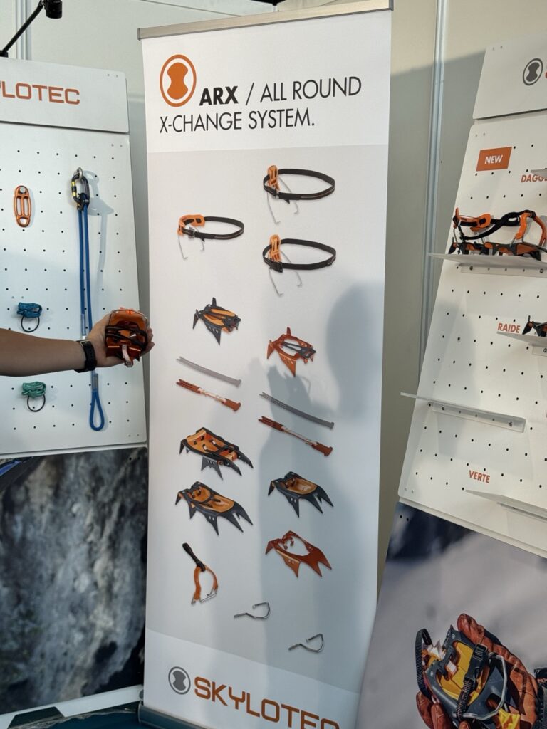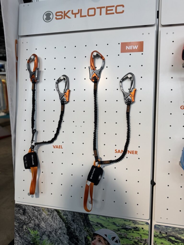 Sur le stand SKYLOTEC (qui vient d’avaler la marque CLIMBING TECHNOLOGY qui disparaitra donc des étales des magasins), nous avons particulièrement apprécié la longe réglable, très simple et pratique, avec mécanisme de réglage enfantin.