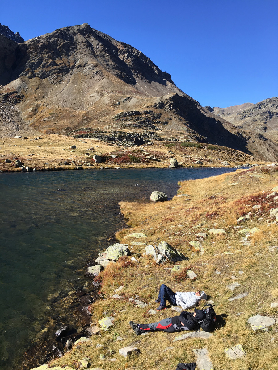 Pique-nique, baignade revigorante et sieste au bord du lac des Bataillères avant la montée digestive au col du même nom.