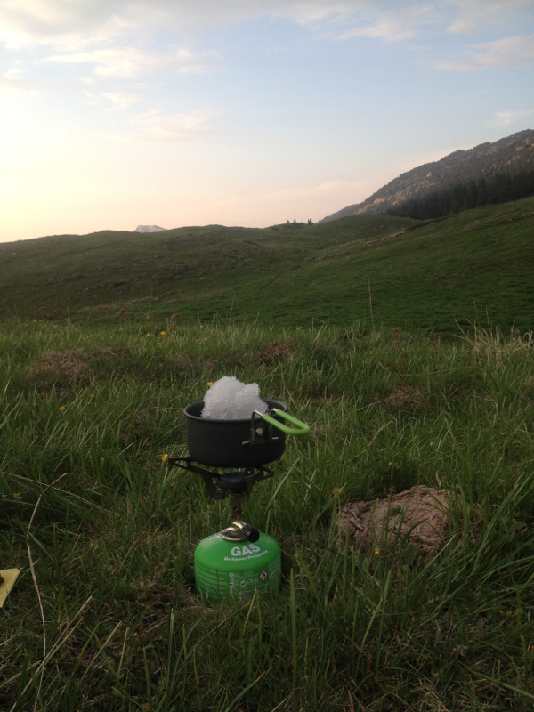 « …C’était génial ! Une traversée si proche de la maison et des grandes villes (Grenoble, Chambéry) et pourtant de très longues portions de sentiers seul en Montagne. Nombreux animaux sur le parcours (marmottes, chamois, rapaces). Pour la gestion de l’eau, j’ai trouvé pas mal de points d’eau finalement que j’ai filtrés avec mon Katadyn. Pour le soir, il restait pas mal de névés donc il était facile de faire fondre de la neige au réchaud. Le choix du matériel de bivouac était tip-top, compact et léger : tarp Terra Nova 2 places + couverture de survie + matelas Nemo Zor en taille short + sac de couchage Koteka 290 (+5°/0°C/-15°C) : résultat, j’ai trop bien dormi !