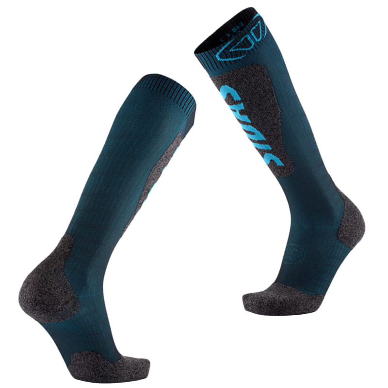Chaussettes de ski homme techniques fabriquées avec des fibres recyclées de haute qualité pour allier durabilité et performance.