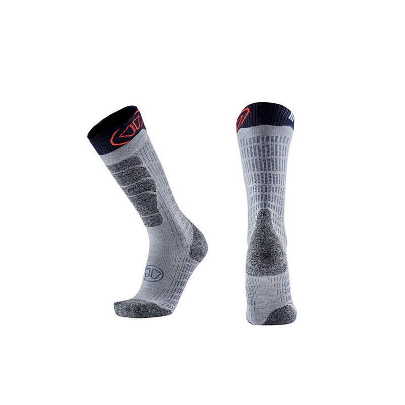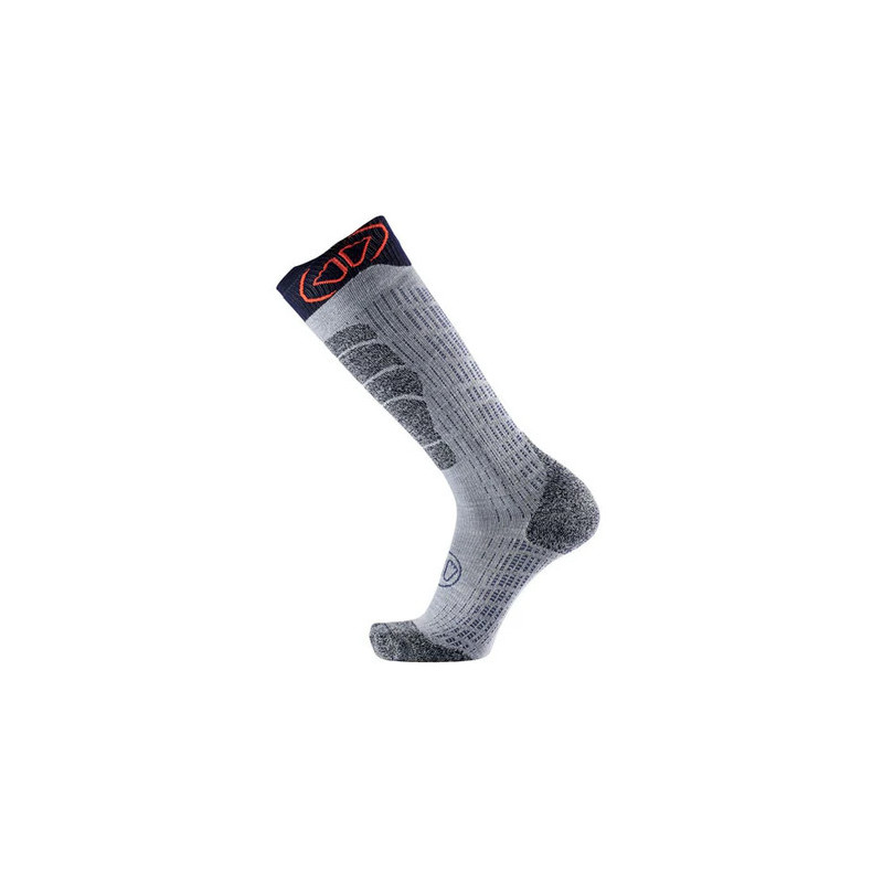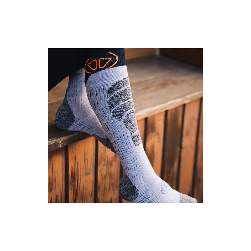 La chaussette ski MERINO SOCKS de Sidas est une chaussette de ski moderne et technique à base de laine mérino (odeur, gestion de l'humidité, douceur) renforcée par des tissus Polyamide et Elasthane pour la solidité et l'élasticité pour un parfait plaquage sur le ppied. Cette chaussette de ski apporte une chaleur optimale, une protection ciblée (tibia, talon, orteils) et augmente le confort dans ses chaussures de ski alpin et ski de rando.