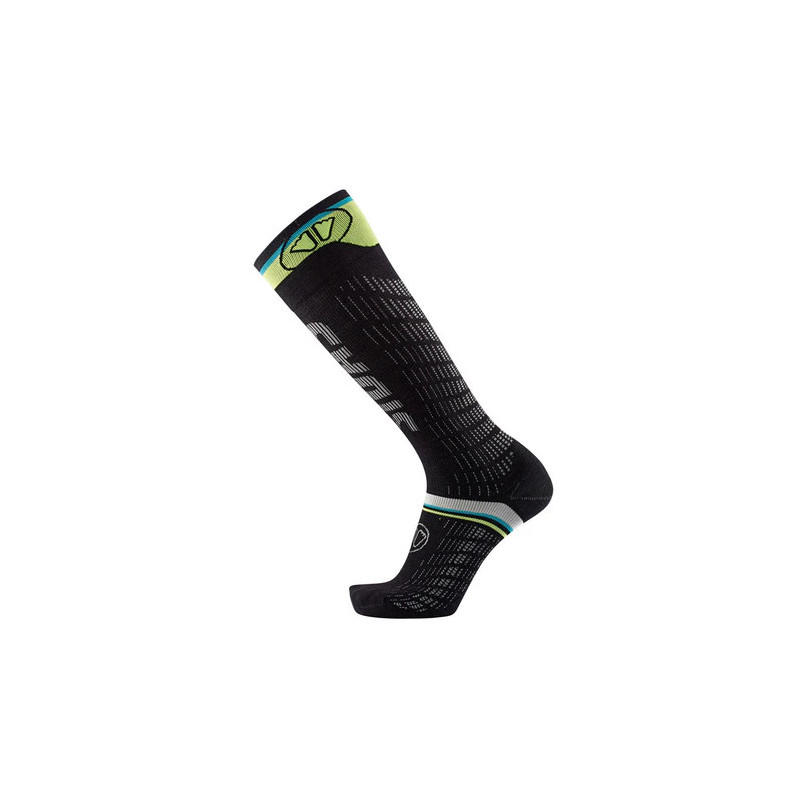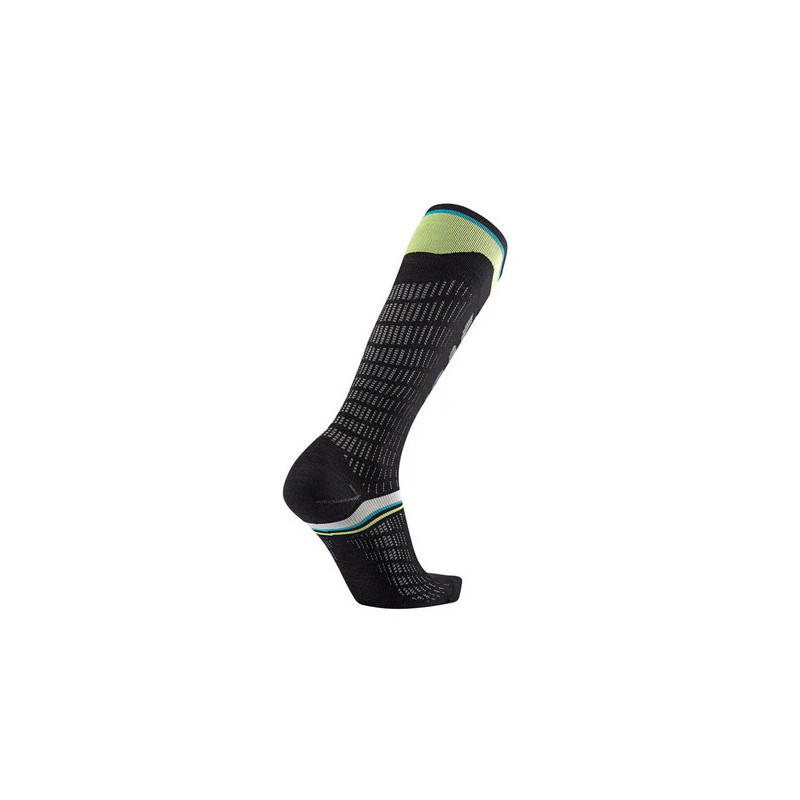 Les chaussettes Ultrafit soutiennent la circulation sanguine et la stabilisation musculaire grâce à la technologie Compressives Tension (20 à 30 mmHg). Cela induit une meilleure récupération pour le skieur, moins de vibrations musculaires et de meilleures performances.