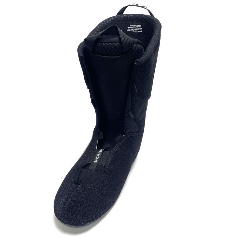 Chausson INTUITION PRO FLEX EVO DEFENDER thermoformable avec un renfort à l’intérieur de la languette + renfort sous le pied (pour marcher dans les refuges ou autour de la tente par exemple), parfaitement compatible avec les chaussures F1 EVO de la marque SCARPA.