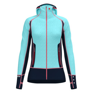Spécificités | Haut hybride en polaire technique et matière douce à poils courts semblable à de la fourrure Capuche ergonomique avec bordure élastiquée Zip sur toute la longueur sur le devant Poches pour les mains à fermeture éclair sécurisée avec bordure collée Poignets avec passants pour les pouces Pochette intérieure dédiée au DVA/ARVA avec système EASY LOCK |