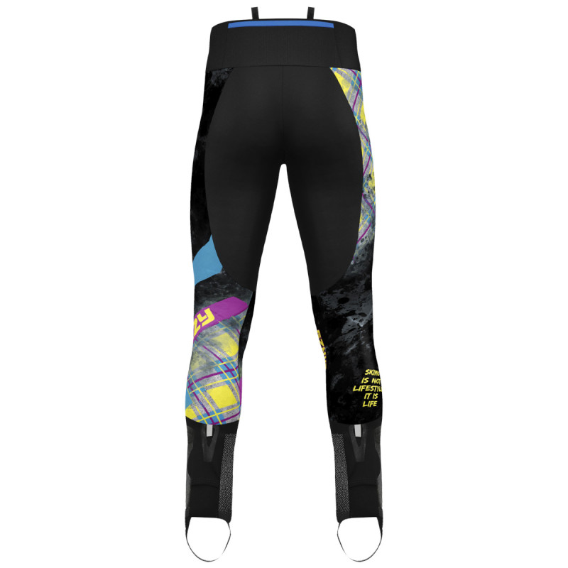 Le pantalon/collant HUGO PANT PRINTED de Crazy Idea est la partie inférieure de la combinaison de course de ski alpinisme 2 pièces du même nom.