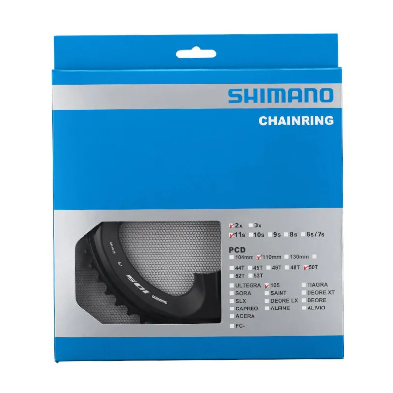 Ce plateau en 50 dents Shimano 105 nous permet d'agrandir le braquet de certains double-plateaux Shimano 105 pour nos vélos Gravel.