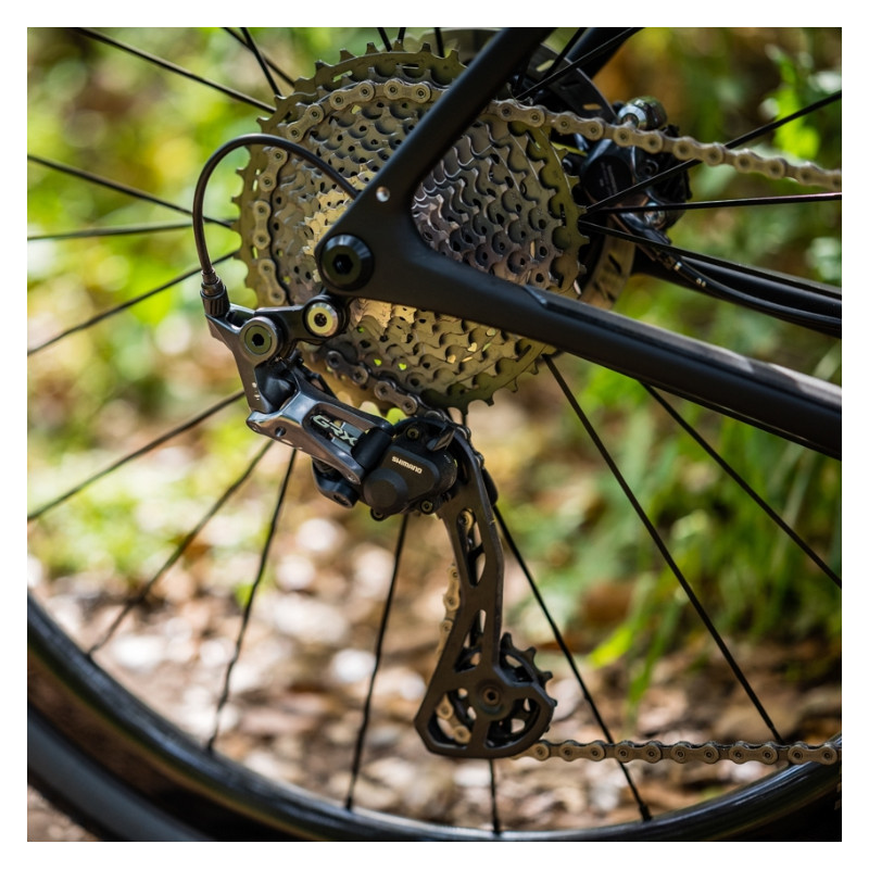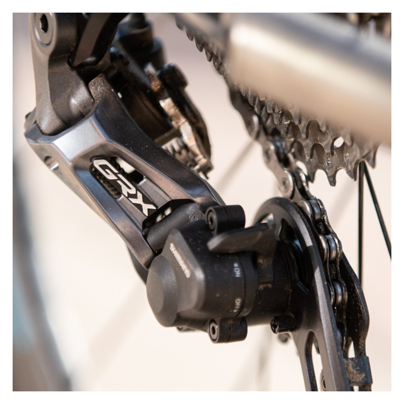 Avec un mécanisme de stabilisation de chaîne intégré, le dérailleur SHIMANO GRX offre une expérience plus silencieuse, ainsi qu'une sécurité et une précision des changements de vitesse sur terrains mixtes. Pour les sorties sur des surfaces lisses, le dérailleur est doté d'un interrupteur ON / OFF pour le tendeur de chaîne. Le dérailleur arrière RD-RX810 est compatible avec les cassettes route dont le plus grand pignon est de 34T au maximum.