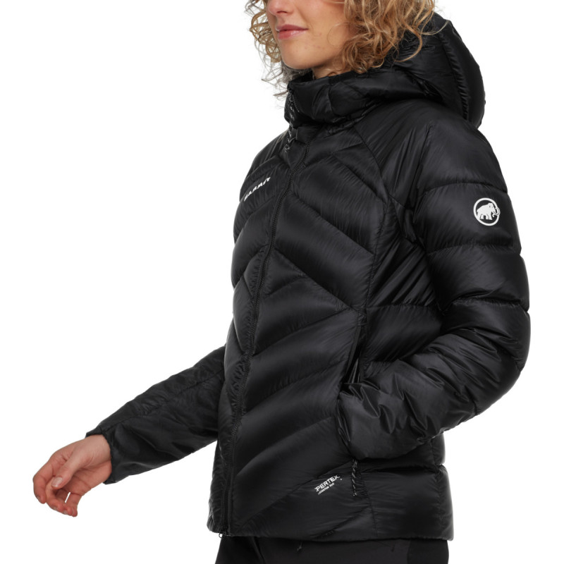 La veste d'isolation en duvet Mammut TAISS IN hooded jacket Women est très belle réalisation de la marque Suisse référente en Montagne. Cette doudoune Mammut femme offre un excellent rapport chaleur/poids/compressibilité.