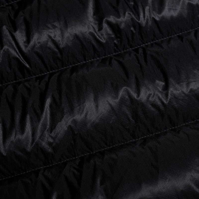 On adore sa combinaison de garnissages synthétiques résistants à l'humidité (pluie fine, neige mouillée) sur les épaules, les manches et la capuche et son garnissage en duvet d'oie blanche haut de gamme pour une exceptionnelle sensation de chaleur sur le corps et une parfaite compressibilité.