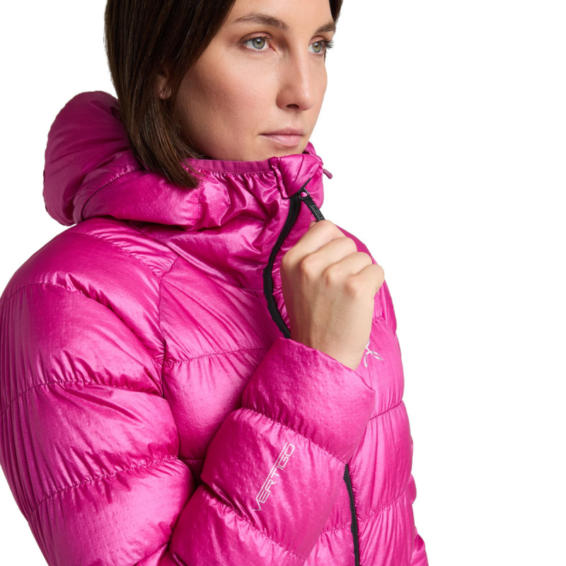La doudoune à capuche VERTIGO DIAMOND DUVET WOMAN de MONTURA est une doudoune femme pour la Haute Montagne et l'Alpinisme où légèreté et rapidité de mouvement sont essentielles.