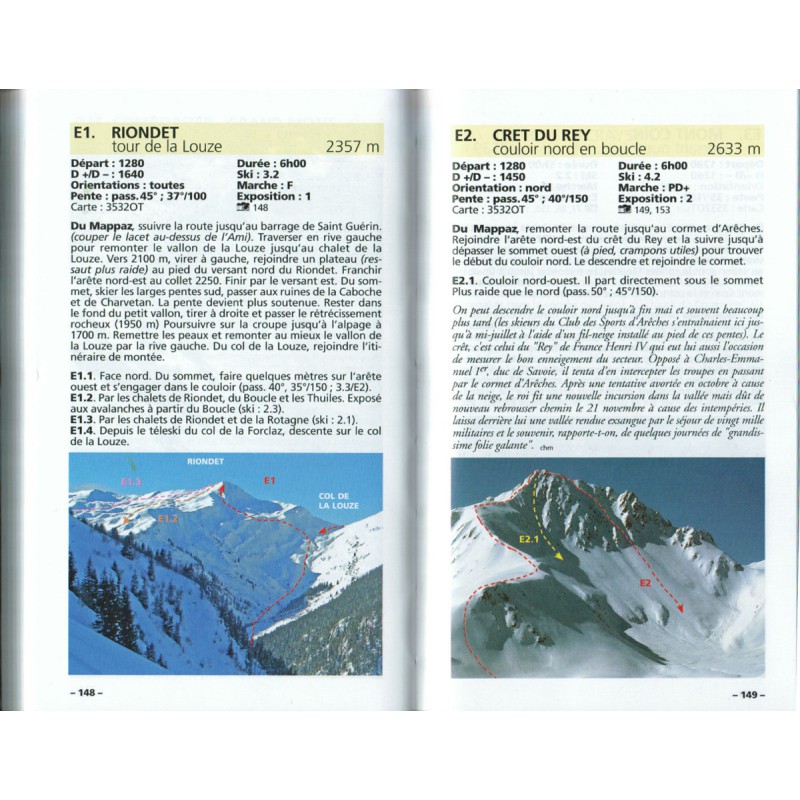 Plus de 500 itinéraires dont 181 courses de base décrites au départ des vallées de la Maurienne, de la combe de Savoie, de la Tarentaise, du Doron, de l’Arly et du Val-Montjoie.