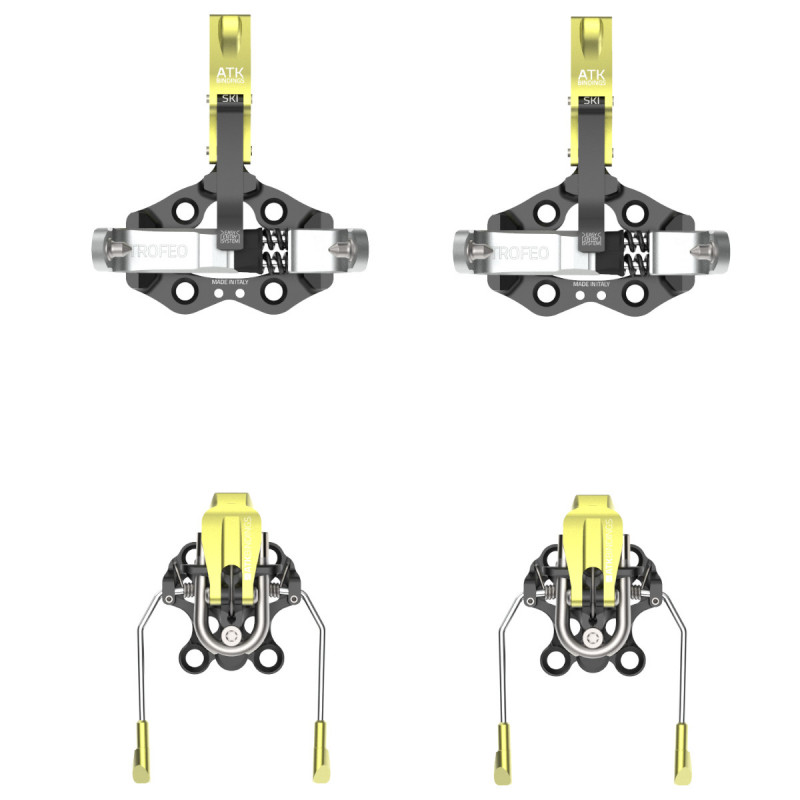 La fixation TROFEO BRAKE de la marque italienne ATK Bindings est une fixation de ski de randonnée ultra-légère (145g) en aluminium aéronautique, acier inoxydable et POM avec freins-skis sur talonnière de 70mm de large pour les compétitions de ski alpinisme "nouvelle norme".