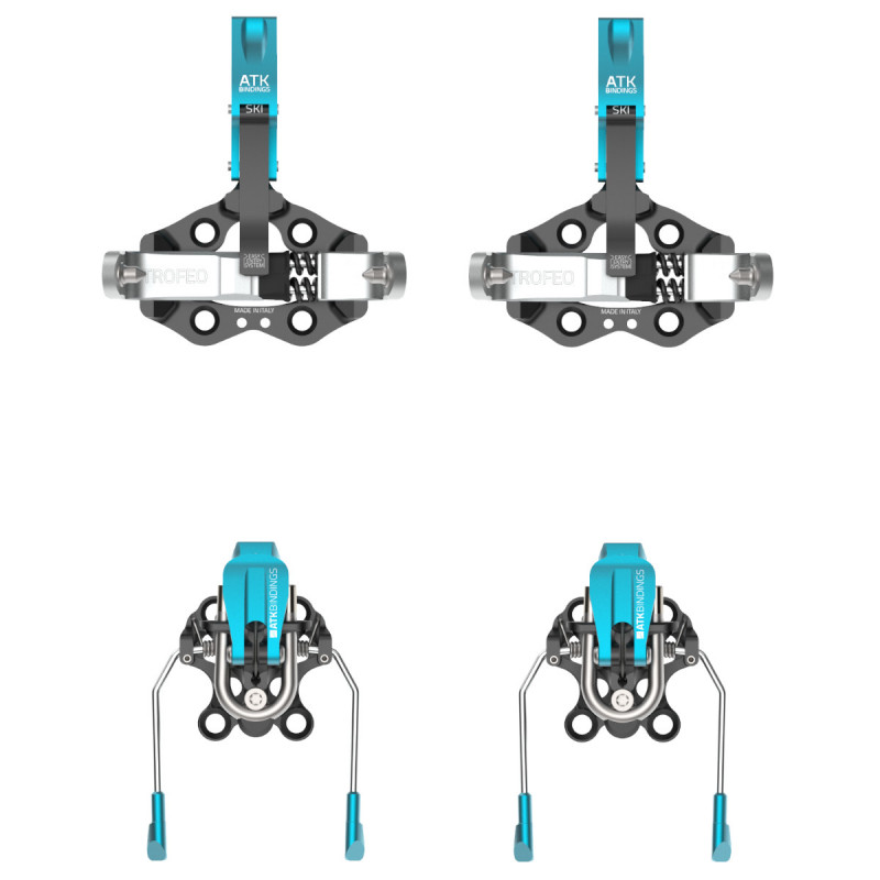 La fixation femme TROFEO BRAKE LIGHTWEIGHT de la marque italienne ATK Bindings est une fixation de ski de randonnée ultra-légère (145g) en aluminium aéronautique, acier inoxydable et POM avec freins-skis sur talonnière de 70mm de large pour les compétitions de ski alpinisme "nouvelle norme".