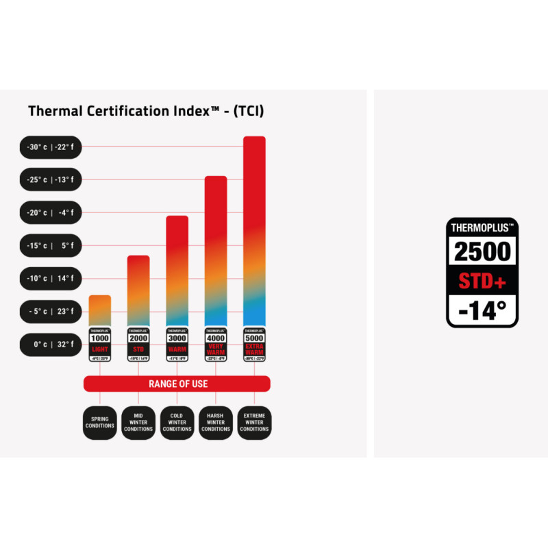 Cuir de chèvre avec perforation pour plus de respirabilité Température THERMOPLUS : -14°C Tailles : S / M / L / XL |