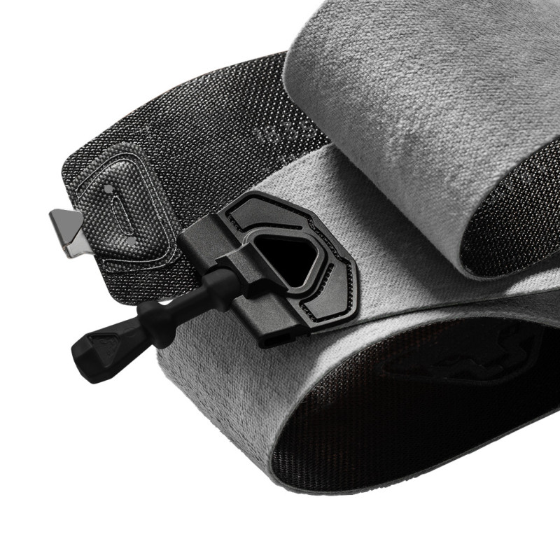 Pour plus de sécurité, sur des répétitions de manips, le talon de la peau dispose d'un crochet de fixation.