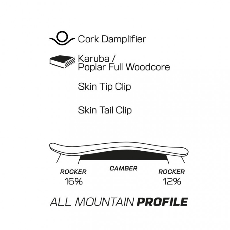 Les peaux de phoque sélectionnées sont des peaux à colle avec un poil mixte (mohair/nylon) pour garantir une bonne accroche à la montée en toutes neiges. Peaux montées avec une attache avant spécifique I-FIX qui se bloque dans la spatule facilement. Permet de faciliter les manips une fois arrivé au sommet.