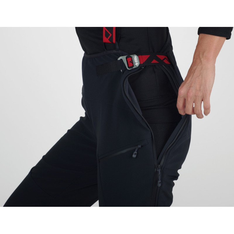 Le pantalon softshell COULOIR PLUS LADY sera votre compagnon idéal pour tous les sports d'hiver, notamment le ski alpin. Il offre une protection maximale même par grand froid. Grâce à sa coupe anatomique , il épouse parfaitement la morphologie féminine et vous offre une liberté de mouvement optimale. Plus de tiraillements ni de pincements. Le zip latéral gauche monte jusqu'à la taille, vous permettant d'enfiler et de retirer facilement le pantalon sans retirer les bretelles. Ce détail technique est particulièrement apprécié par temps froid et venteux, où rapidité et simplicité sont primordiales. L'espace de rangement comprend une poche zippée dissimulée et une poche cuisse zippée plus grande avec boucle. Le bas des jambes est doté d'une guêtre pare-neige munie d'un crochet qui maintient fermement le pantalon à la chaussure, empêchant la neige de pénétrer, même dans la poudreuse profonde. Les fentes d'aération en bas des jambes sont recouvertes d'un rabat et fermées par un bouton-pression, facilitant l'enfilage par-dessus les chaussures de ski. Des éléments réfléchissants assurent votre visibilité au crépuscule, par temps de brouillard et dans l'obscurité.