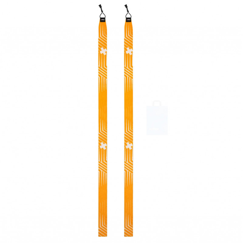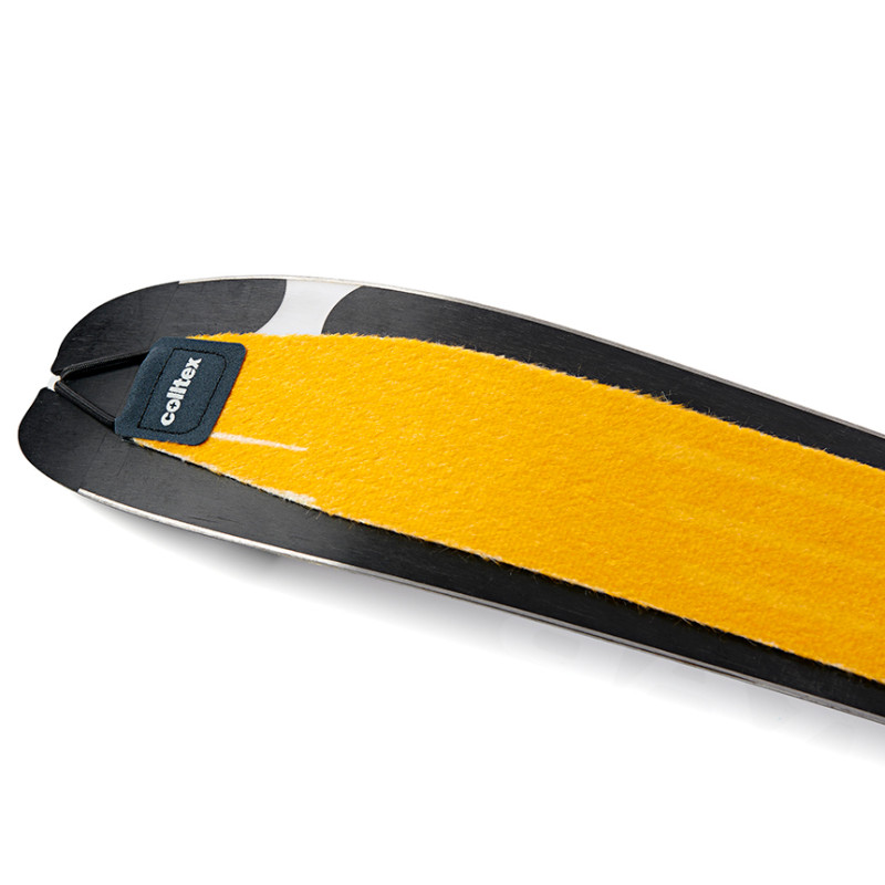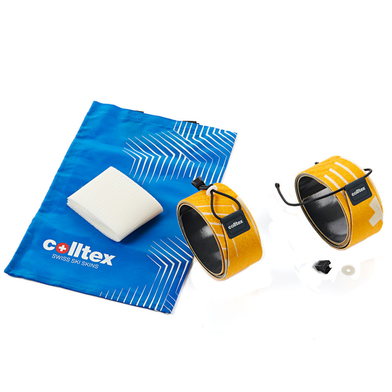 Ce Set "clé en main" est composé de 2 peaux droites RACE CRYSTAL 62mm de Colltex montées sur renfort cousu et un tendeur course élastique à l'avant.