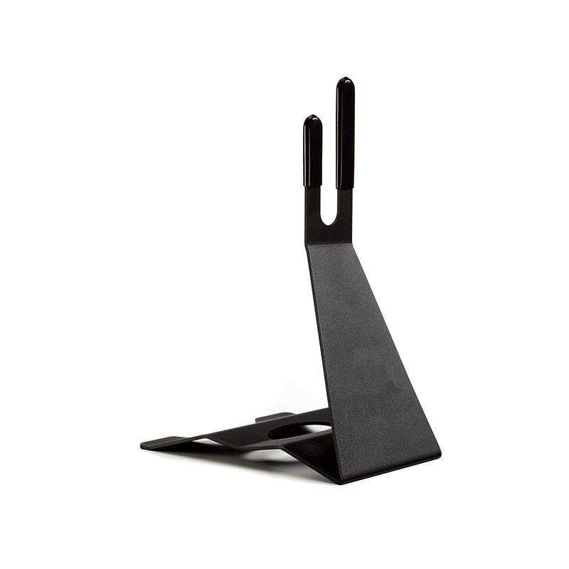 Porte-vélos sur pied peint en noir, découpé au laser.