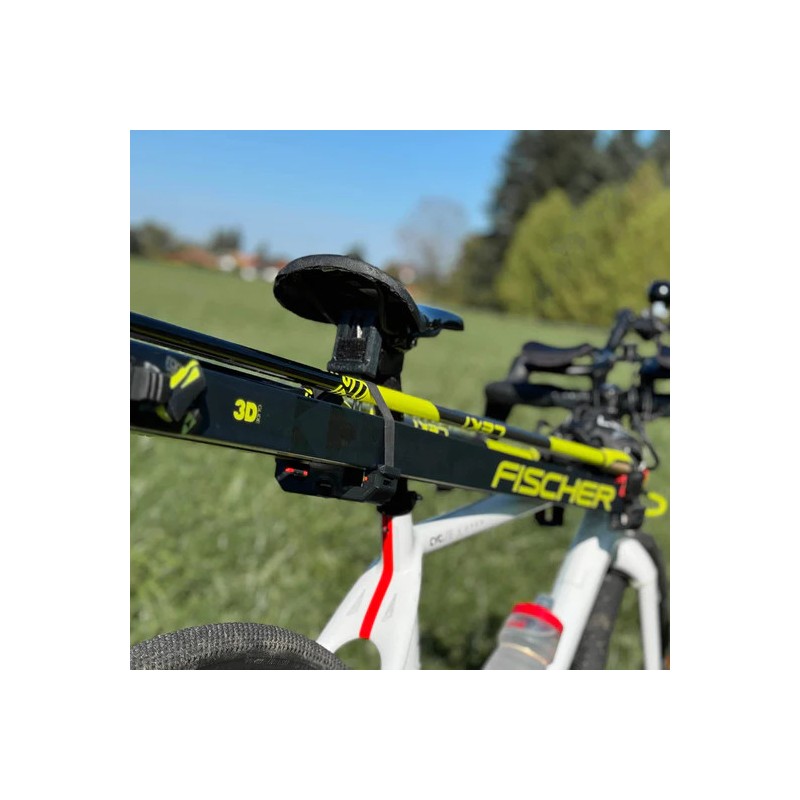Equipement indispensable à la pratique du vélo-ski, ce SKI RACK 04 (4ème génération à partir de 2026) vous permet de fixer n'importe quel type de ski (fond, nordique, rando, freeride) sur n'importe quel vélo musculaire (VTT, Gravel, VTC) et Vélos électriques.