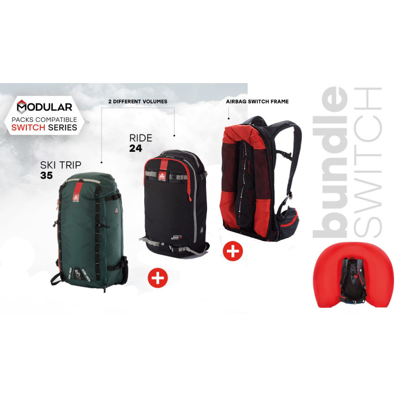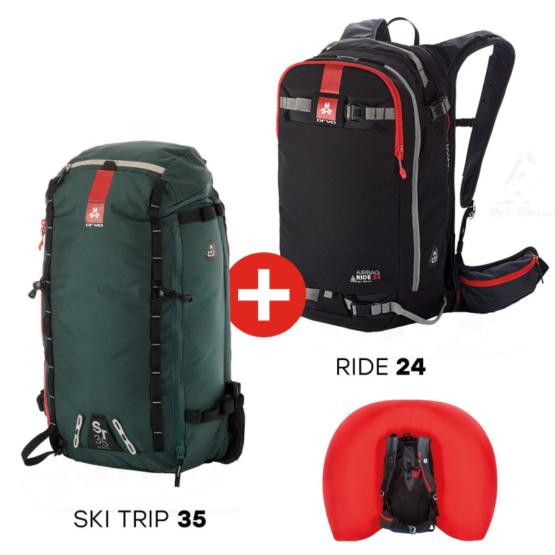 Ce pack / combo de sacs à dos avalanches 2 en 1 Airbag Arva Equipment Reactor RIDE 24 + SKITRIP 35 BUNDLE vous permettra de moduler votre base Airbag à chaque type de sortie.