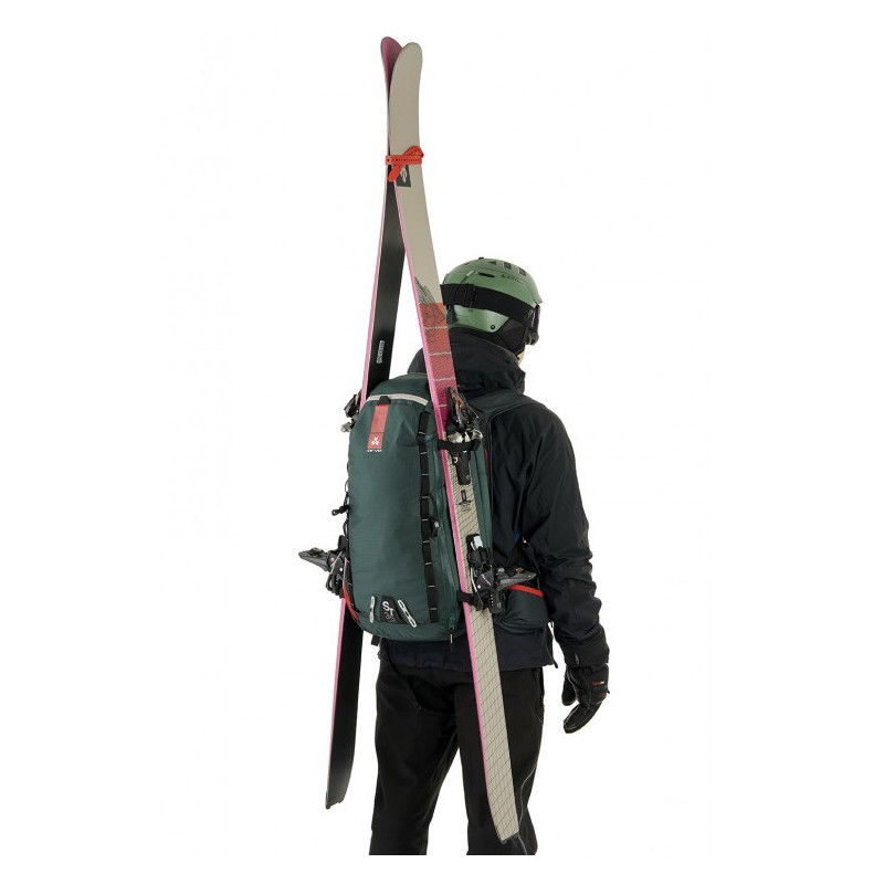 | Caractéristiques RIDE24 | Réalisé avec Léo Slemett, Athlète professionnel Accès intégral au compartiment principal par zip côté dos. Poche extérieure dédiée au stockage du matériel de sécurité équipé de fourreaux de maintien. Très grande poche pour le masque ou pour les petits objets de valeur. Capable de porter 2 piolets. Portage de skis en diagonal et en latérale (A-Frame). Compatible snowboard. Dispose d'un porte-casque intégré avec sa poche de rangement. Compatible système modulaire SWITCH. Composition : Polyester recyclé 300D ainsi que des doublures en polyester recyclé 150D SWITCH |