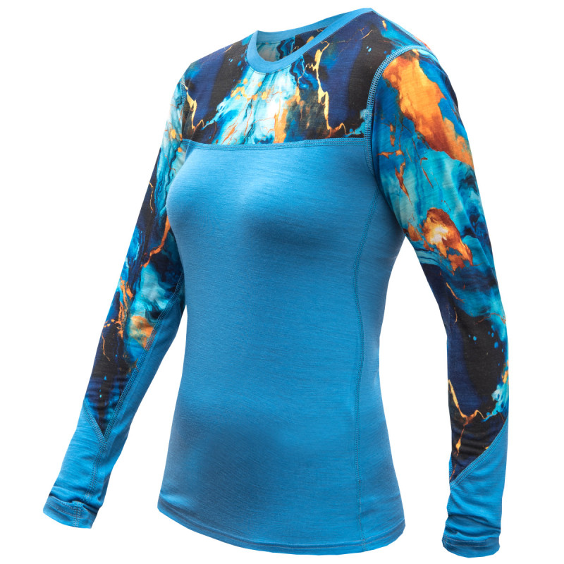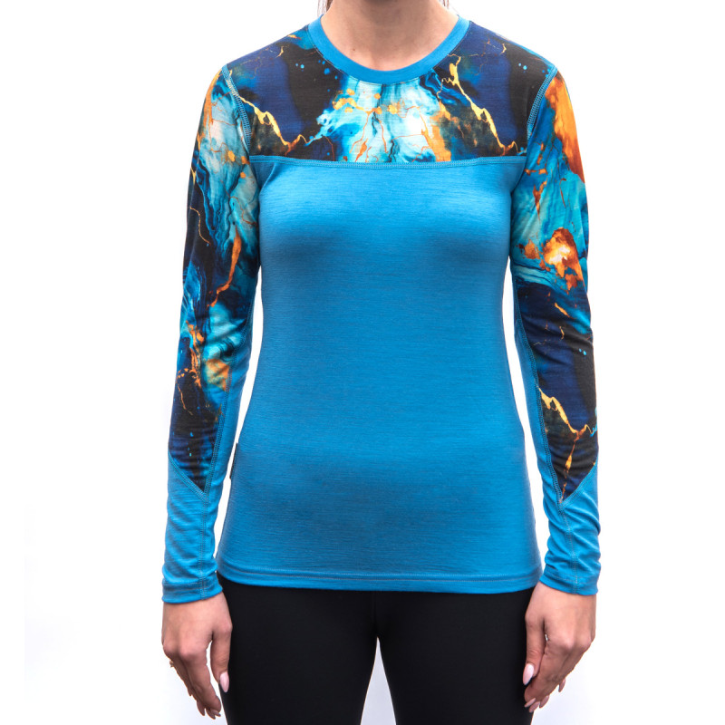 Tee-shirt manches longues femme col rond, en laine Mérinos de haute qualité (Nouvelle Zélande), d'épaisseur moyenne (160g/m2) pour une utilisation en toutes saisons, très polyvalent.