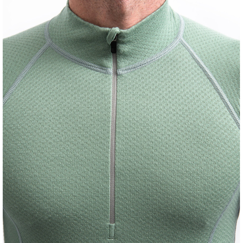 Tee-shirt manches longues homme, 1/4 ZIP, double face (intérieur synthétique, extérieur en laine Mérinos de haute qualité), d'épaisseur moyenne (170g/m2), très résistant, très thermique, pour une utilisation par températures fraiches à froides.