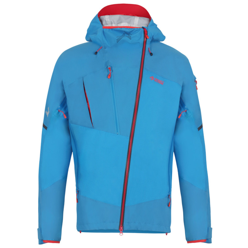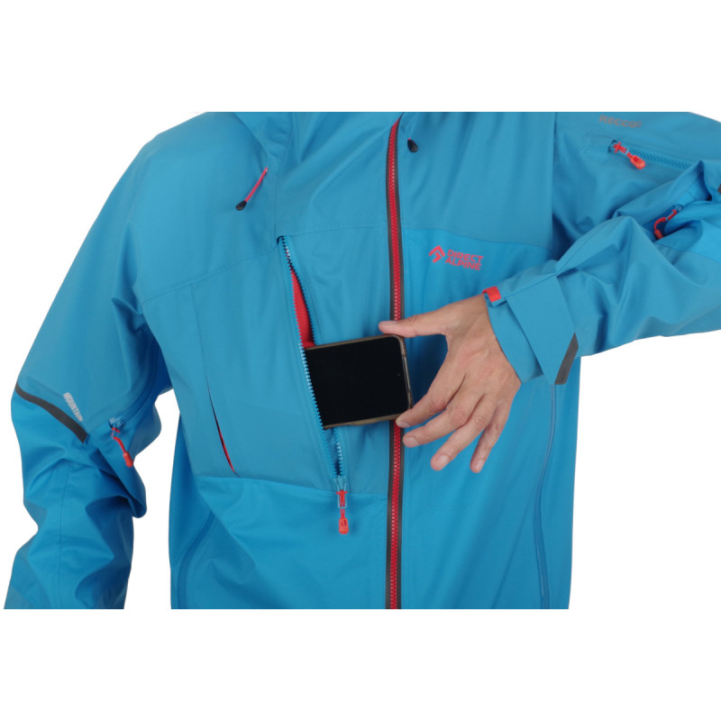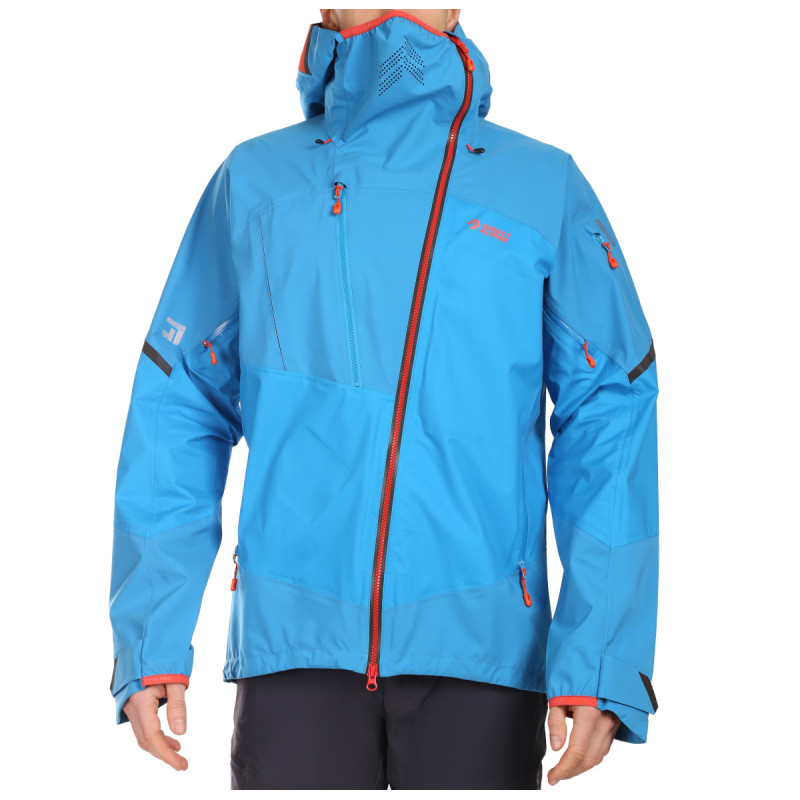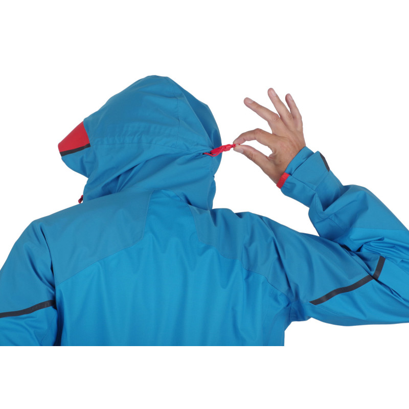 Si nous considérons l’utilisation professionnelle de ce modèle, la veste compactée dans sa propre capuche chargera tout au plus la poche supérieure du sac à dos, offrant une garantie 100% imperméable en cas de mauvais temps. C'est ce que tout guide de montagne professionnel ou vrai guide de montagne aime. La veste est donc suffisamment résistante et agréablement légère et facile à ranger. La coupe de la veste a été conçue pour accueillir la plupart de vos activités et ne pas limiter votre liberté de mouvement de quelque manière que ce soit. Les proportions de la veste permettent une excellente utilisation en hiver, car vous pouvez porter suffisamment de vêtements en dessous (polaires, doudounes). La conception structurelle est conçue pour offrir une protection maximale, même dans les conditions les plus difficiles, telles que la flexibilité de la capuche, du col montant, des manches et de la base, etc.