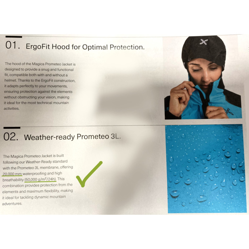 Cette veste Magica Prometeo de Montura a été sélectionnée chez Montania pour sa protection très efficace contre la pluie ou la neige (3 couches 20000mm), sa légèreté (240g seulement), sa compressibilité et son excellente respirabilité (testée jusqu'à 50000g/m2/24h).