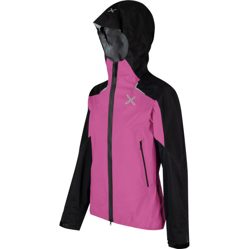 La veste imperméable femme MAGICA PROMETEO JACKET de Montura est une veste de protection de type 3 couches, très légère (240g) et compressible dans sa poche interne, utilisant le nouveau tissu nylon PROMETEO 3 couches à la fois parfaitement imperméable (20000mm) et très respirante (jusqu'à 50000g/m2/24h), et adaptée au port d'un casque Montagne ou ski de rando.