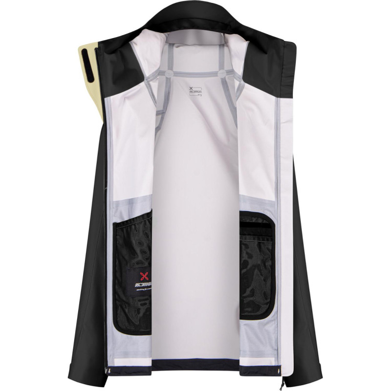 Membrane PROMETEO 3 couches à la fois parfaitement imperméable (20000mm) et respirante (25000g/m2/24h), avec grands zips de ventilation sous les bras. Son tissu améliore la gestion de l'humidité et la thermorégulation, vous gardant au sec et à l'aise dans des conditions changeantes. Elle est traitée avec Fresh Face, un déodorant spécial à base de plantes qui réduit efficacement les odeurs, permettant de la porter plus longtemps entre les lavages.